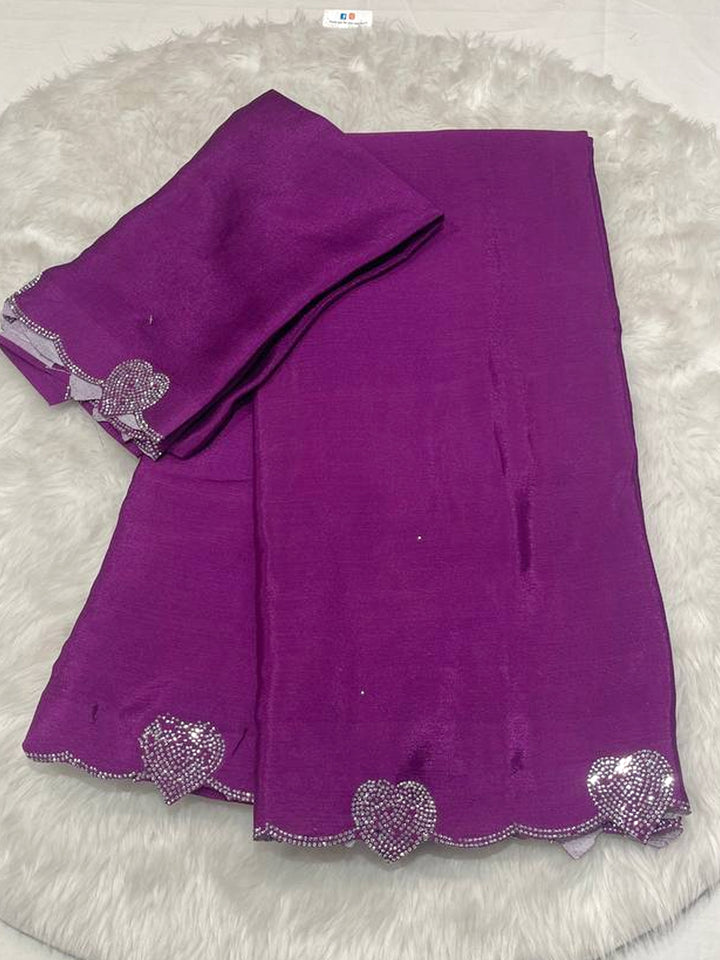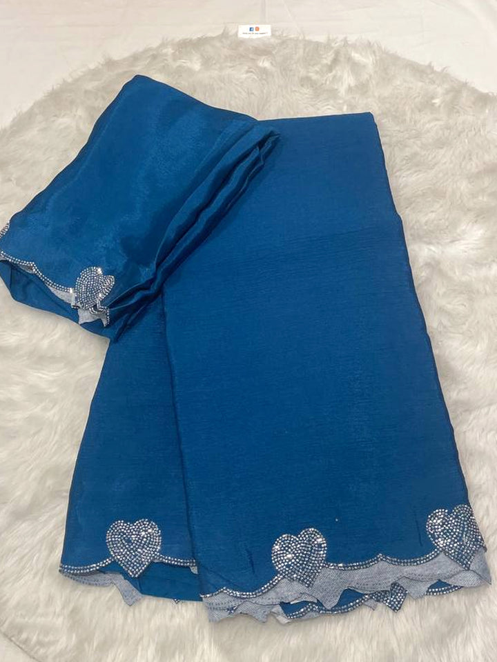 Elevate your elegance with this exquisite Chiffon Crape saree, crafted from flowy, self-textured fabric that drapes beautifully. Adorned with subtle sparkling sequin work and a distinctive heart-shaped cut-work border embellished with diamond-style stones, it makes a striking statement for special occasions. The saree includes a matching self-designed blouse piece featuring complementary cut-work and border details, ensuring a cohesive and refined look. Designed for delicate care, it is recommended to dry clean only to maintain its pristine charm.