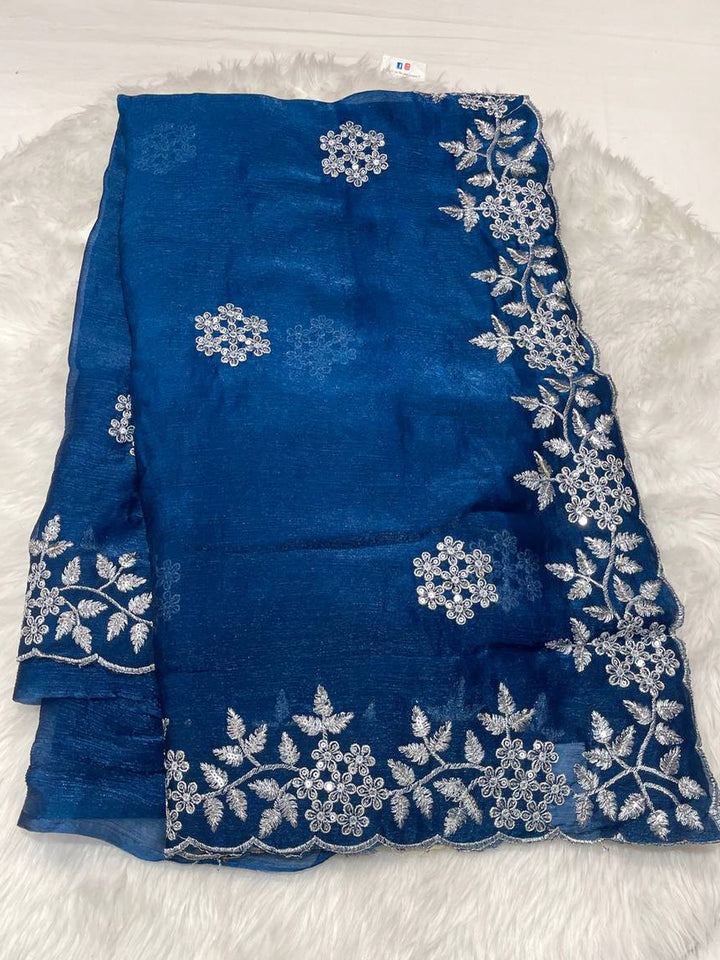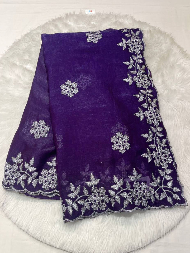 Silver Cut Work Space Silk Saree