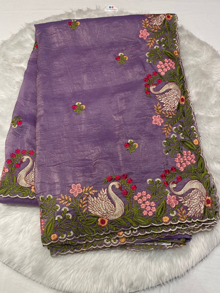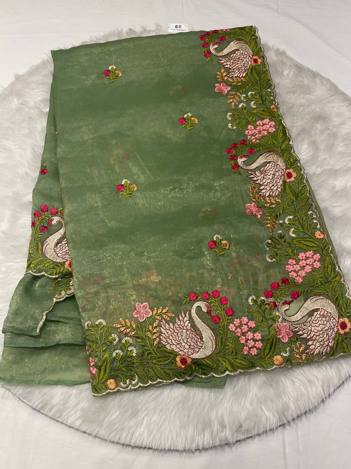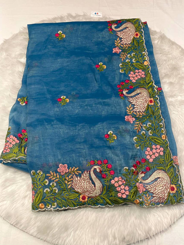 Space Silk Swan Thread Work Saree